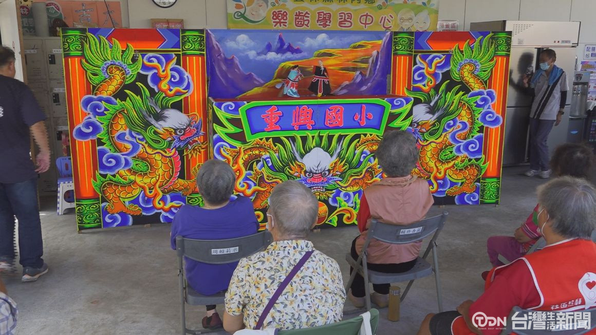 ▲林內重興國小創意改編傳統布袋戲,將環保與生態元素融入經典劇碼《哪吒救龍王》,前往在地進興宮與社區巷弄站為近50名長者演出。/記者 江儀 攝