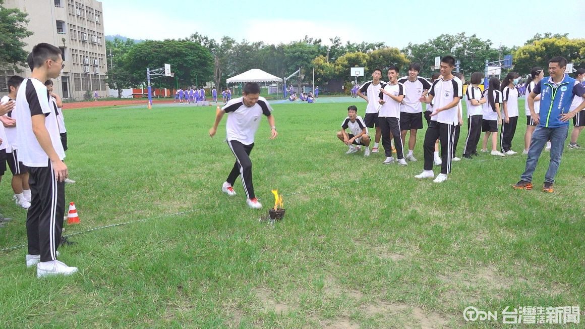 點燃小火爐,師長們宣誓後跨越火爐,接下來就是學生上場,大聲說出自己的宣示內容後,跳過火爐,不僅是象徵鼓起勇氣跨越困難,也是注入力量邁向未來,今年主題目標是立定志向、接受挑戰、活出自我等,以童軍堡壘為主題,象徵成年同學有團隊合作精神。