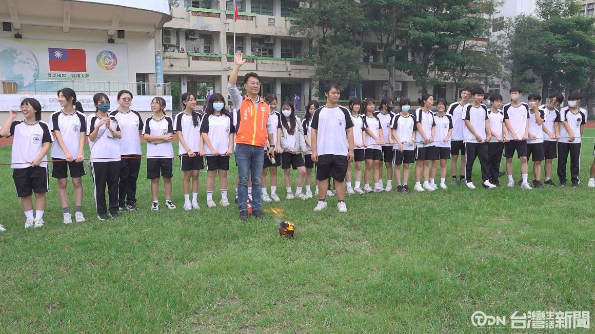 ▲學生們輪流上場,大聲說出自己的宣示內容後,跳過火爐/記者 陳昭安攝