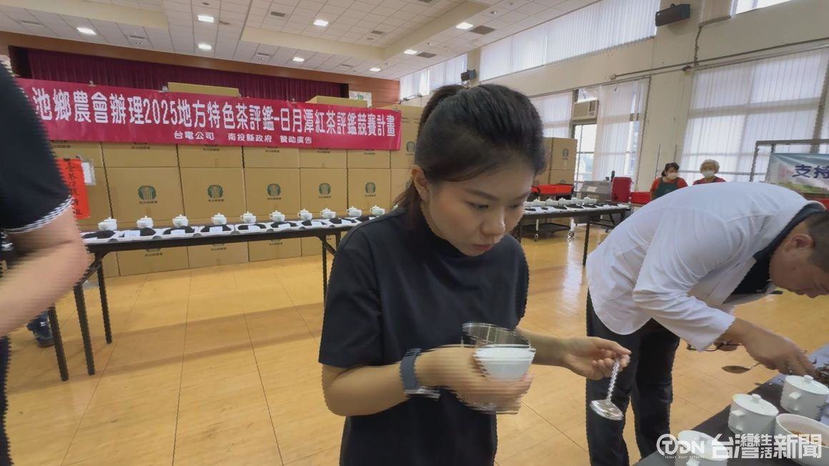 ▲每年魚池鄉農會的紅茶評鑑,除了評選出優質紅茶之外,評鑑的過程也開放茶農參加,今年有兩位茶農第二代擔任工作人員,他們把握機會學習品茶/記者 范宏坤 攝