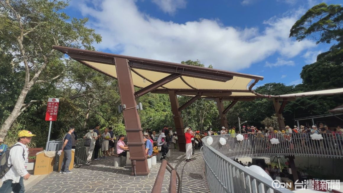 市長盧秀燕帶領眾人刺破氣球,宣告大坑風景區最受歡迎的觀景點,正式換上新裝,位於北屯區大坑九號步道終點、擁有30多年歷史的「觀音亭景觀平台」,因結構傾斜、違建疑慮封閉長達多年,如今重建工程完工 。