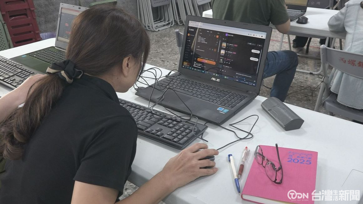 ▲參與學員練習使用講師所教的AI工具。記者 謝沂辰/攝