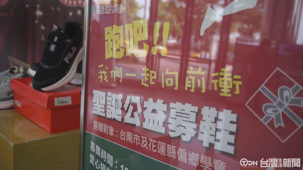 跑吧我們一起向前衝公益募鞋活動,迄今已經募集超過3500雙運動鞋了,臺南市東區一間百貨,邀請民眾和愛心人士一起響應這項公益活動,希望完成今年的「愛分享聖誕公益點燈活動」贈送偏鄉孩童運動鞋的活動,也會將運動鞋名額給沿海地區的弱勢學童,作為聖誕禮物送給學童們。