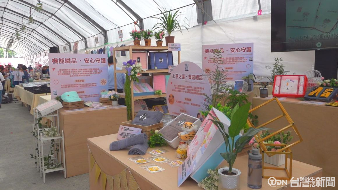 ▲主辦單位特別在現場設置小展區,展出精品毛巾、科技功能毛巾、美容毛巾、運動毛巾跟家庭日用毛巾等等多元產品,讓民眾採購外,也能實際了解目前毛巾產業最新動態發展 / 記者 王可萱 攝