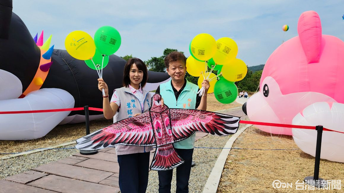 ▲水里鄉長葉銘豐夫妻一同出席參加首屆的水里風箏嘉年華/記者金芸亘攝