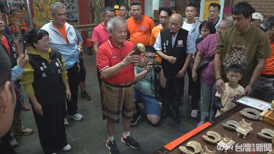 元長鄉鰲峰宮主祀保生大帝,是地方信仰中心,日前啟駕前往中國福建泉州祖廟謁祖,歷經多日圓滿完成,26日下午聖駕回鑾,廟方也舉辦盛大的接駕儀式,迎接神尊回鑾安座。當天還有一場特別的「贈筊儀式」,虔誠信徒民李壽郎、黃鳳夫妻為了感念保生大帝庇佑,特別邀請「竹頭筊」工藝保存者黃奕薰,親手製作並捐贈國寶級竹頭筊予鰲峰宮,表達誠摯感恩之意。
