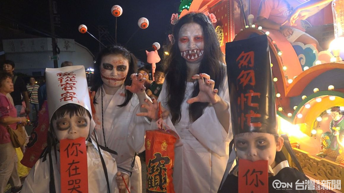 ▲大小朋友穿著各式各樣的搞怪服裝,像是有西方的鬼怪精靈、東方的黑白無常以及動漫角色/記者 陳昭安攝