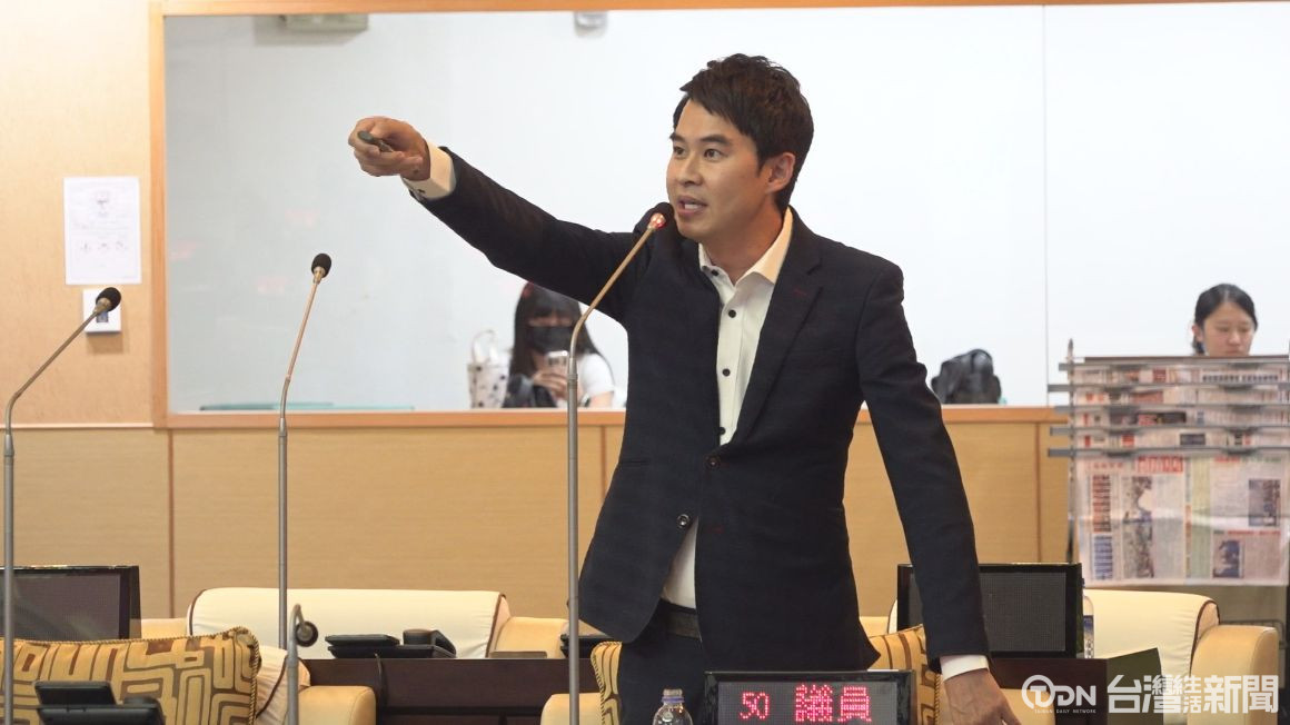▲市議員林冠維建議市府向中央爭取經費,全面整理臺南航站。/記者 蘇英豪攝