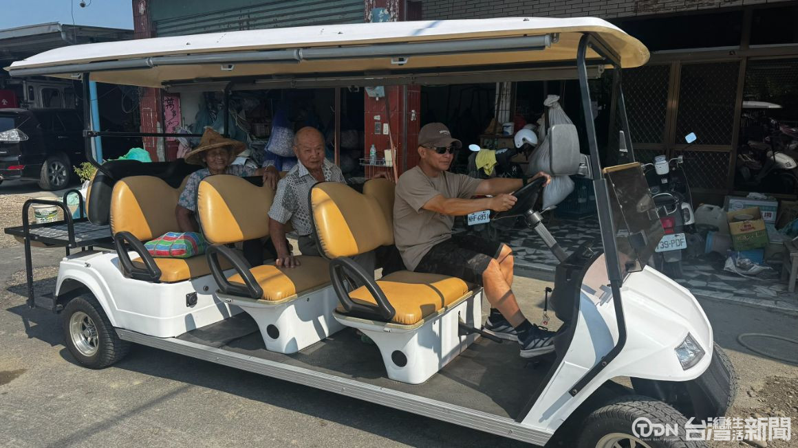 ▲崙仔社區發展協會體恤年長者辛勞與不便,特地購置一部高爾夫球車,用來接送長輩來往食堂與家中,讓長者們都直呼「足感心」!記者林虹伯/攝