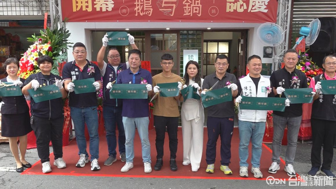 眾人歡喜剪綵,也歡迎大家前來嘗鮮。來自東勢鄉的鵝肉加工業者,打造的鵝肉火鍋品牌,28日於虎尾鎮正式開張,店內主推在地優質草飼鵝,提供健康美味的鵝肉精緻火鍋。希望讓消費者更加了解在地養鵝產業,也享受鵝肉的美味。