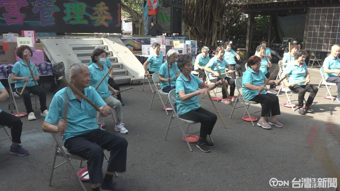 ▲社區阿公阿嬤快樂打竹棒,為現場帶來熱鬧氣氛。/記者 周有勝 攝