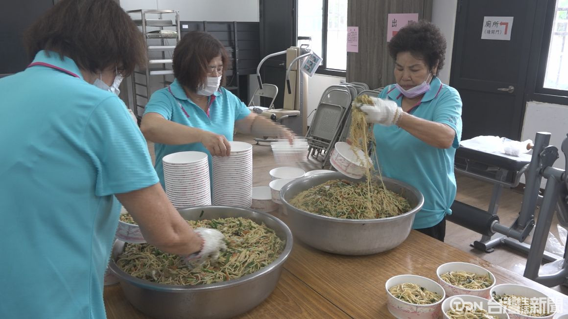 ▲除了摸彩,社區志工也自己準備好吃的午餐,讓長輩吃的健康又開心。/記者 周有勝 攝