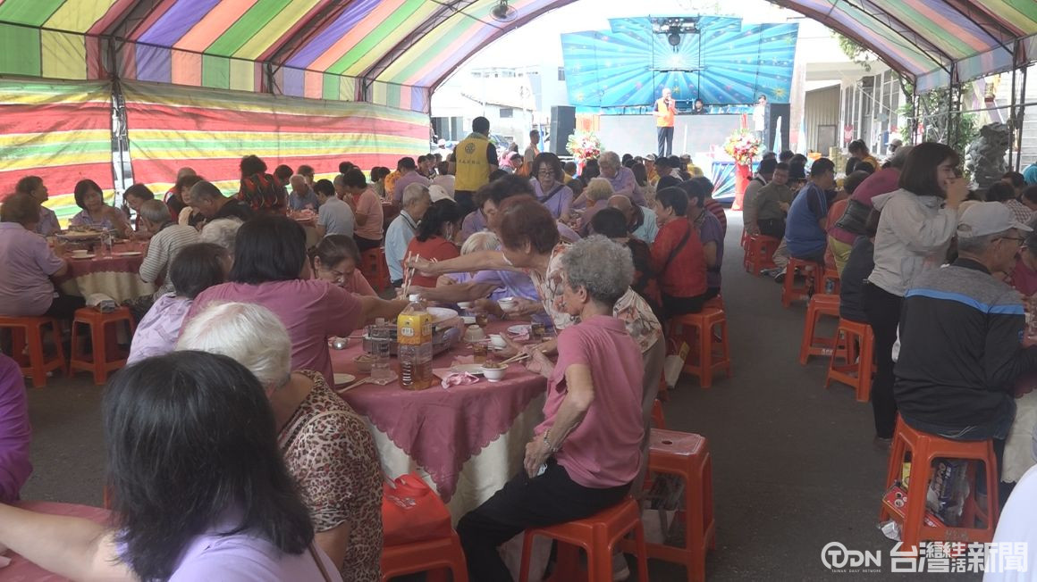 ▲圖為歡慶重陽節,草屯鎮富寮社以溫馨辦桌方式,邀請社區長輩一起過節,享用美食也聯絡感情/記者林妤昕攝
