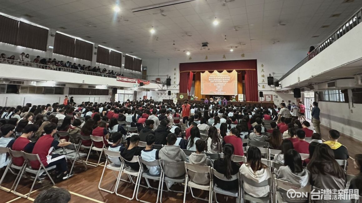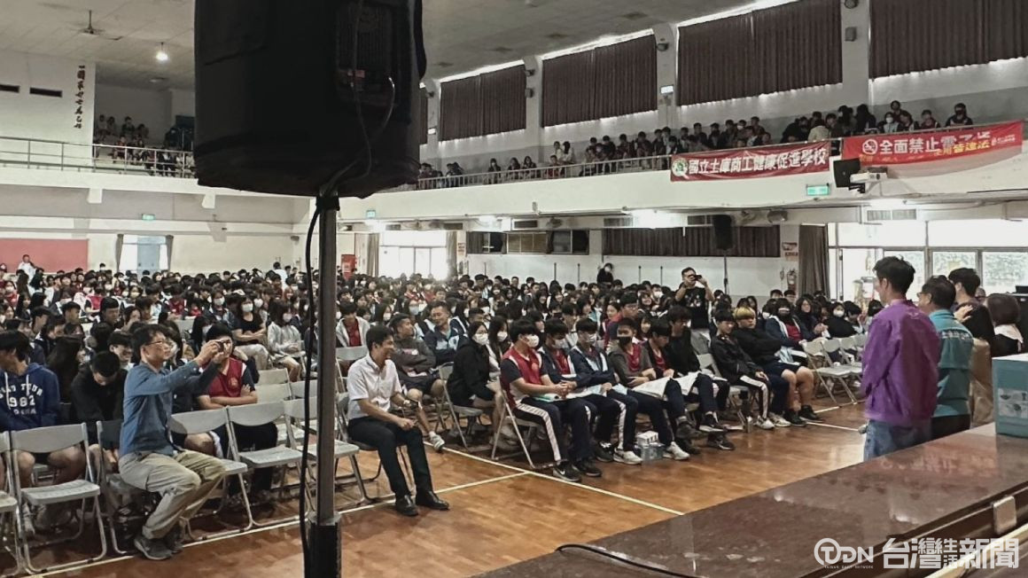 ▲雲林縣三文推廣協會29日早上邀請曉水珠心靈之旅專業團隊,至土庫商工辦理雲林反詐及反毒教育宣導活動。記者林虹伯/攝