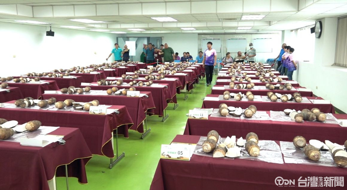 ▲台中市農業局與大甲區農會聯合舉辦優質芋頭評鑑,來自台中市各區的農友報名參賽,希望爭取年度優質芋頭的冠軍頭銜/記者 陳柏翰攝
