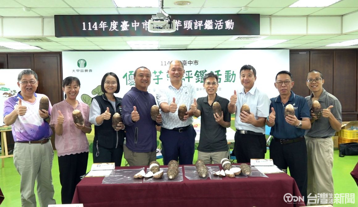 為提升芋頭整體競爭力,台中市農業局與大甲區農會這天聯合舉辦優質芋頭評鑑,過程中評審會依照芋頭的生鮮外觀與熟芋頭的質地、口感等項目,進行嚴格篩選與評分,因此每年競爭都相當激烈,而今年共吸引60組、來自台中市各區的農友報名參賽,希望爭取年度優質芋頭的冠軍頭銜。