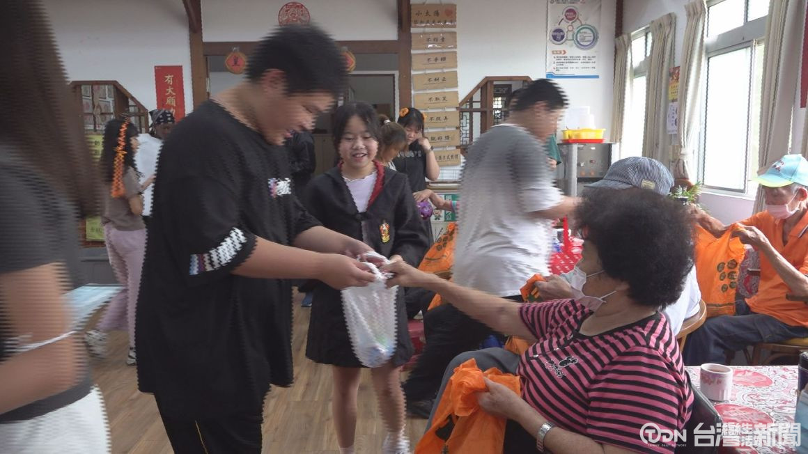 ▲學生兵分三路,高年級來到高齡照顧機構表演給長輩看欣賞討糖 / 記者 王可萱 攝