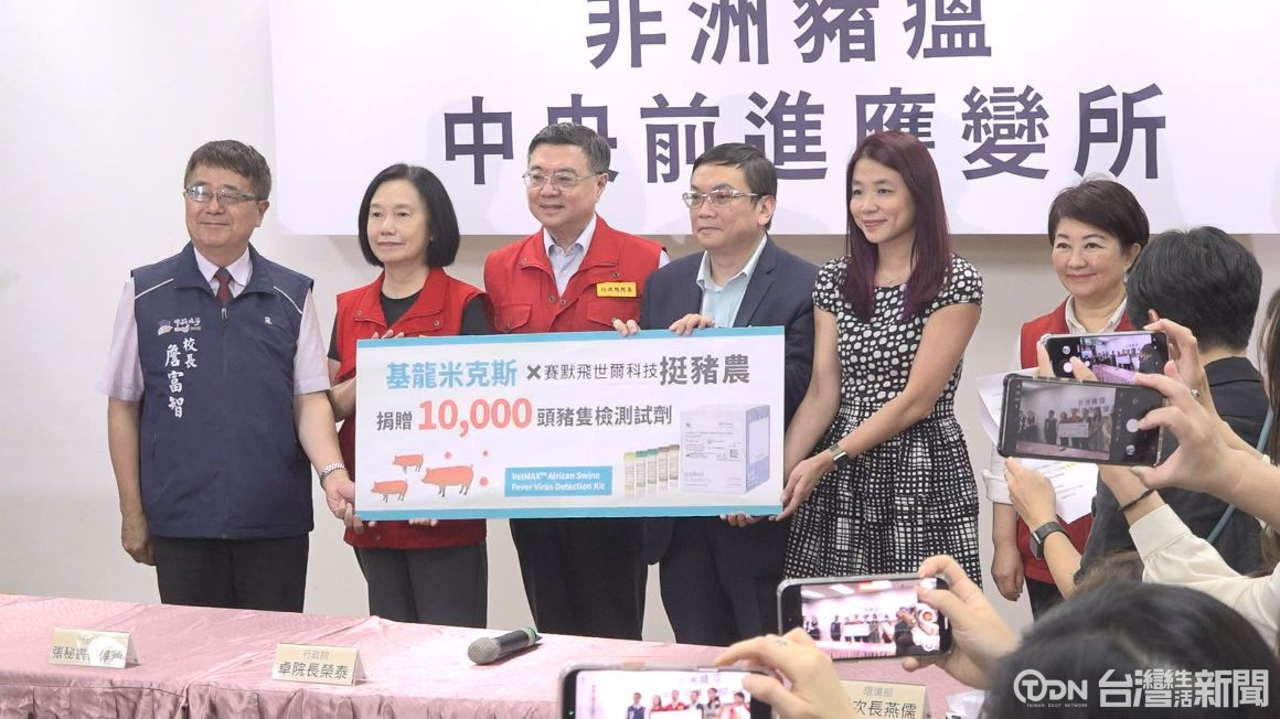 說明會現場,也有生技業者捐贈1000劑非洲豬瘟快速檢測試劑,可縮短檢測時間、提升效率,對此,卓院長表示感謝,希望民間與政府一起合作,能夠打贏這場非洲豬瘟的疫情戰爭。