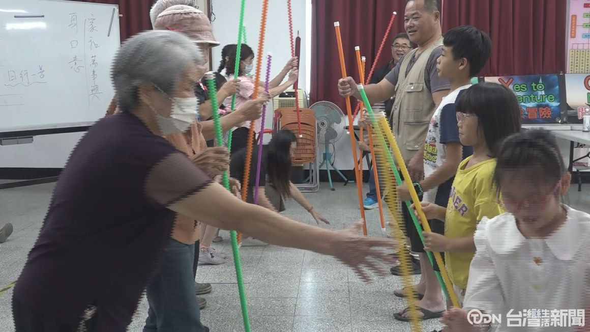 ▲一支棍子,可以玩起多樣的遊戲,從遊戲中建立親子良好的互動關係。/記者 王昭聖 攝