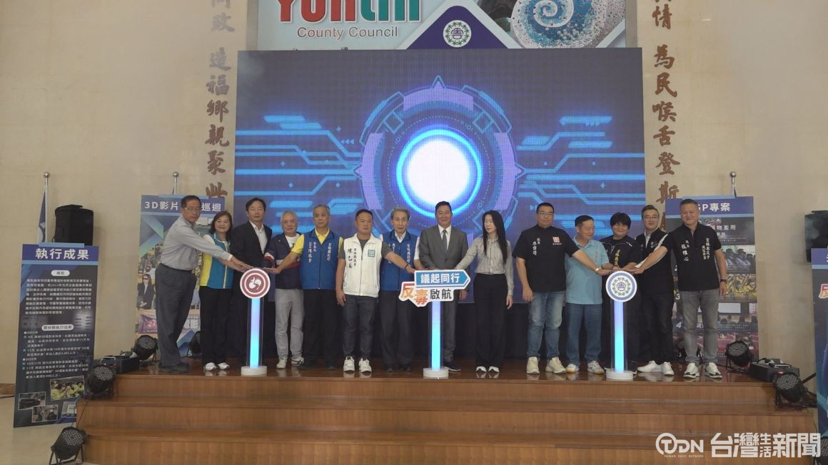 眾人一起按下開關啟動裝置,宣布雲林縣議會跟「中華趕路的雁全人關懷協會」合作,在雲林縣內推動的「3D反毒電影車」啟航,雲林縣議會議長黃凱說明,因應現在新興毒品越來越多,議會是秉持預防勝於治療的理念,去年開始跟協會一起,推動反毒電影車開入19間校園,大受學生好評,也成功透過最新的影像科技,引起青少年認識毒品危害的興趣,進一步深化反毒觀念,所以今年因應11月份是「反毒教育月」,他們是再次推動這台車進入縣內20間國中巡迴。