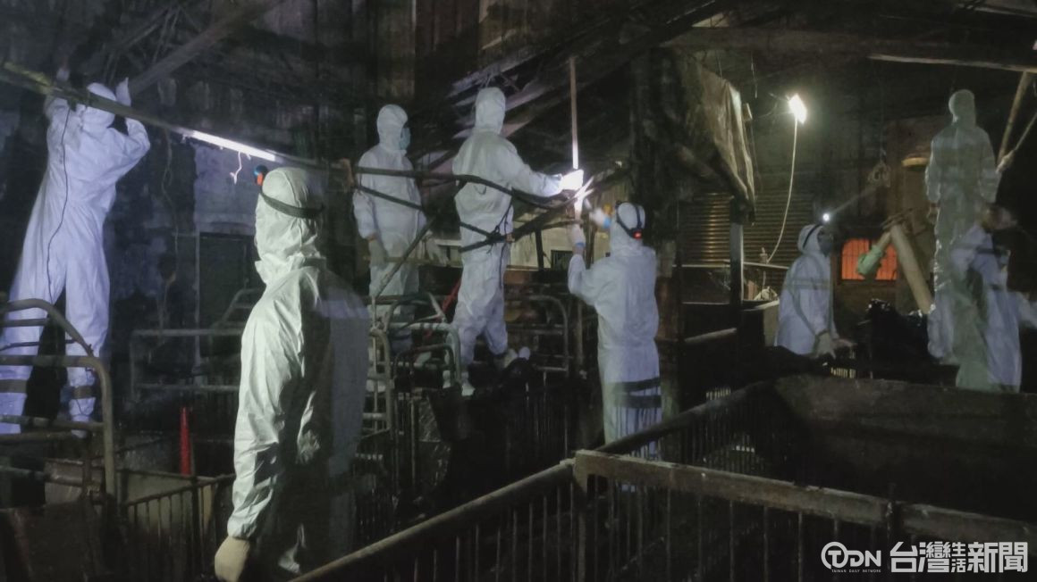 ▲豬瘟案場二採仍陽性 ,國軍弟兄加入全面清消/記者 林佳樺攝
