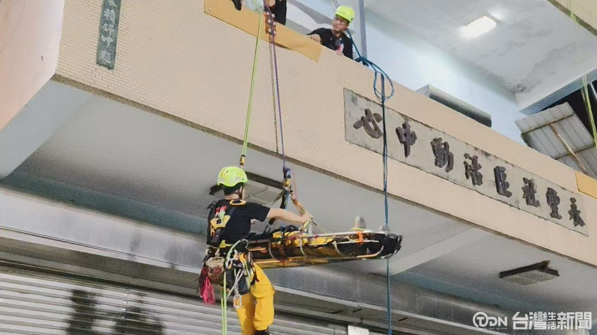 ▲水里義消展現札實的繩索垂吊救援訓練/記者金芸亘攝