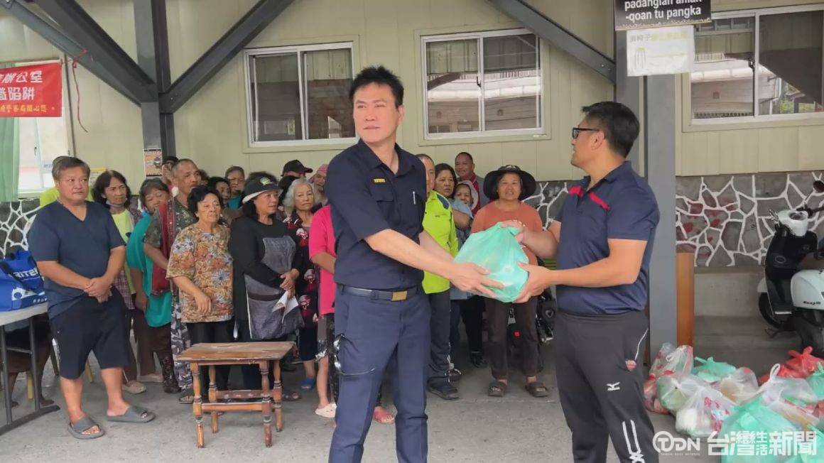 ▲信義分局長王凱文響應慈善活動捐贈物資給部落有需要的村民/記者金芸亘攝