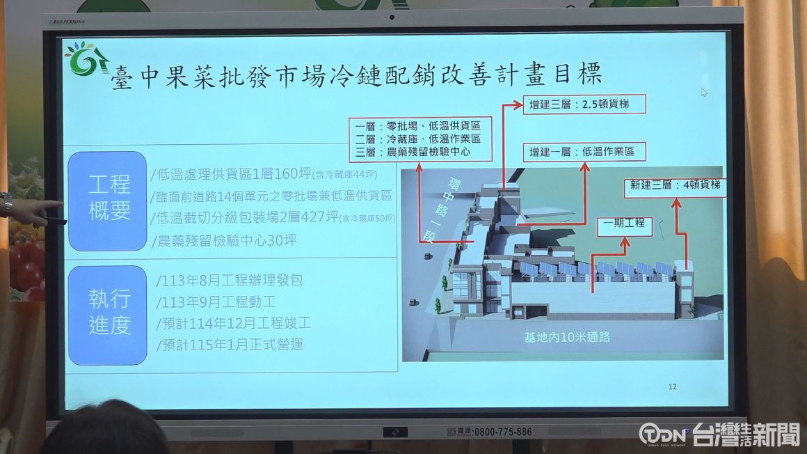 補助金額創下歷年新高,其中台中果菜批發市場是中部地區最大的農產品批發交易中心,交易量今年上看80億元,二期工程興建零批發場、低溫處理供貨區、低溫截切分級包裝場、農藥殘留檢驗中心等。目前進度突破70%,預計年底完工。