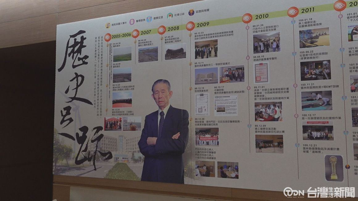 ▲為了讓民眾能更了解雲林長庚醫院的故事跟創辦人王永慶的理念,院方就在醫療大樓一樓設立歷史壁,將雲林長庚醫院的歷史跟服務完整紀錄,讓民眾更認識醫院一路以來的故事。/記者 陳佳昇 攝。