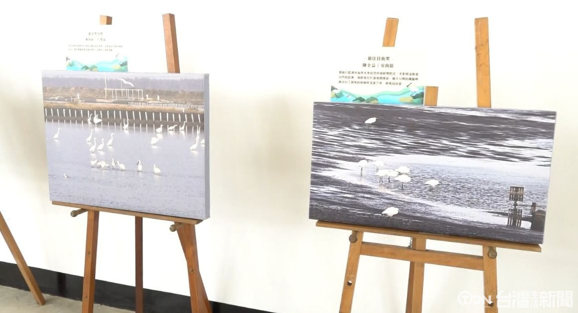 ▲台江處也結合ESG企業永續發展資源,期盼公私協力擴大保育成效 。/ 記者 蘇英豪 攝畫面上所看到的攝影作品,都是七股跟安南的養殖漁民,在黑面琵鷺來臺灣過冬時所留下的珍貴紀錄,今年台江處透過專家評選,除了舉辦第四屆的頒獎典禮,同時也邀請大家把握這個月,來到遊客中心欣賞他們的作品。