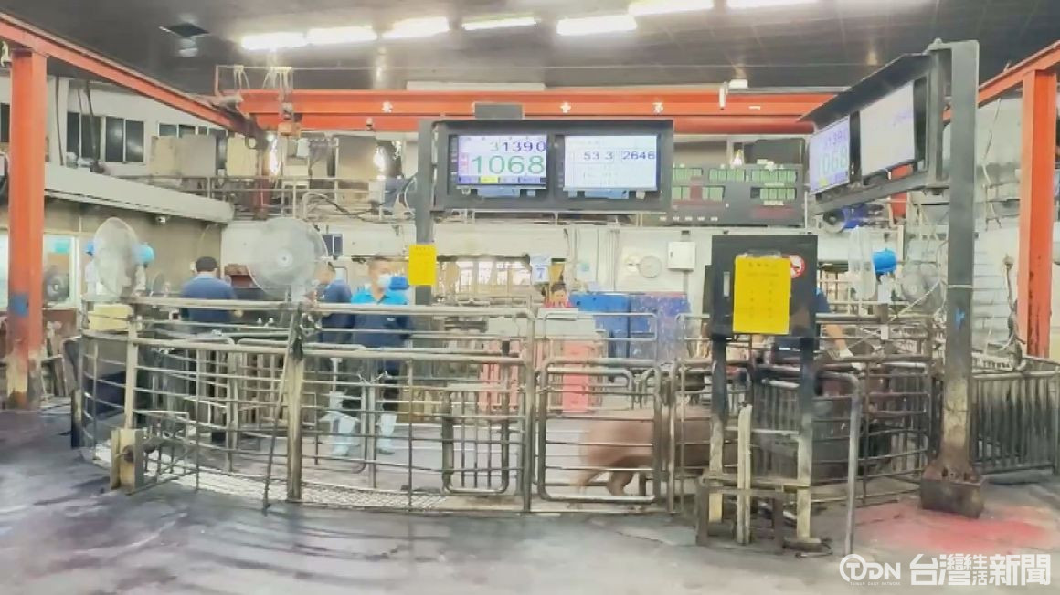 ▲雲林縣肉品市場7日恢復拍賣,第一頭豬拍出每公斤99.6元。雲林縣肉品市場/提供