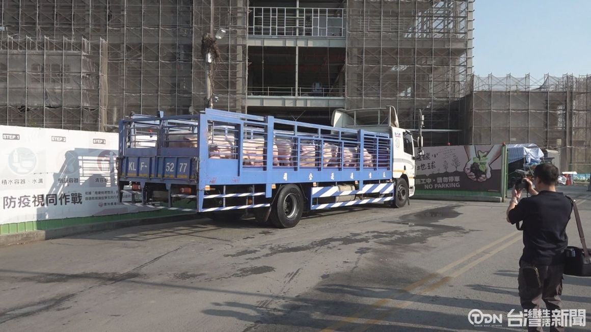 ▲農業部日前宣布豬隻禁運解封,雲林縣肉品市場在完成清消後,6日下午就有豬車進場。記者林虹伯/攝