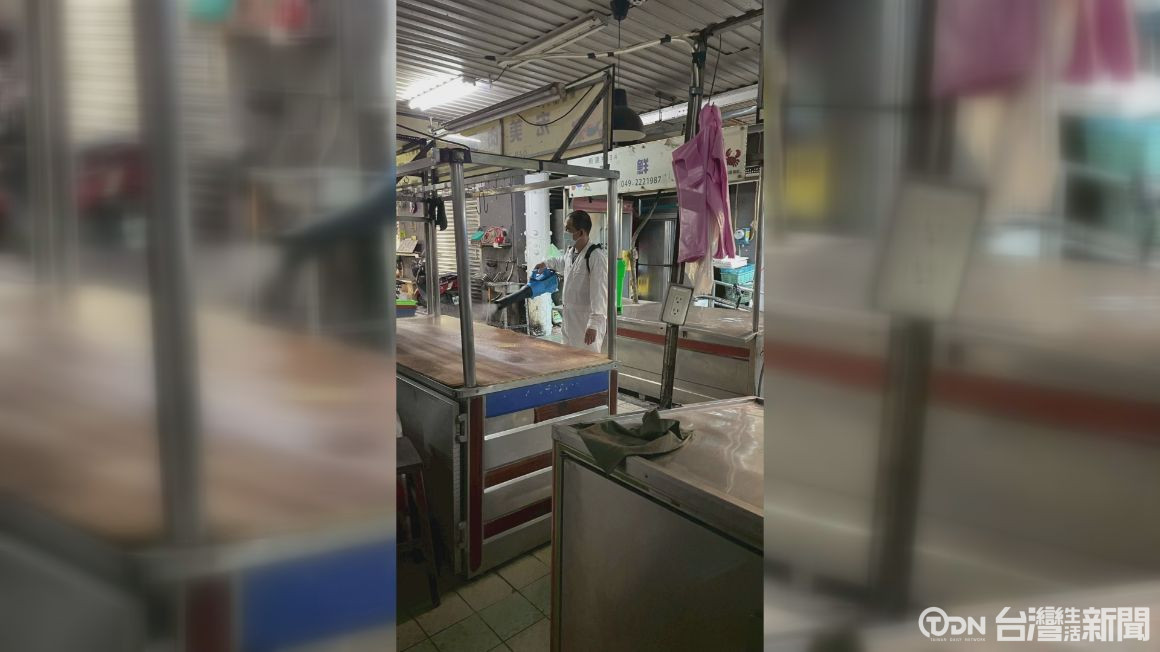 ▲南投市公所11/5、11/6為市場豬肉攤商及水溝等處進行清消/記者 廖韋凌攝