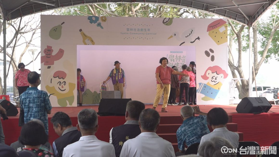 長輩在台上帶來精采戲劇演出,另外一邊攤位區,各社區都擺出自己最具特色的成果,這是雲林縣一年一度的社造嘉年華,除了展售農產、美食,也有人是透過社區營造推動環境保育,信仰傳承跟產業開發,高齡照顧以外,也有社區是關注親子跟青少年成長,發展出來的風貌多元、精彩。