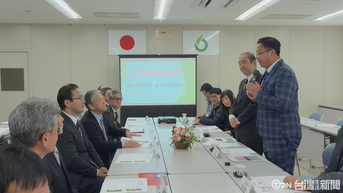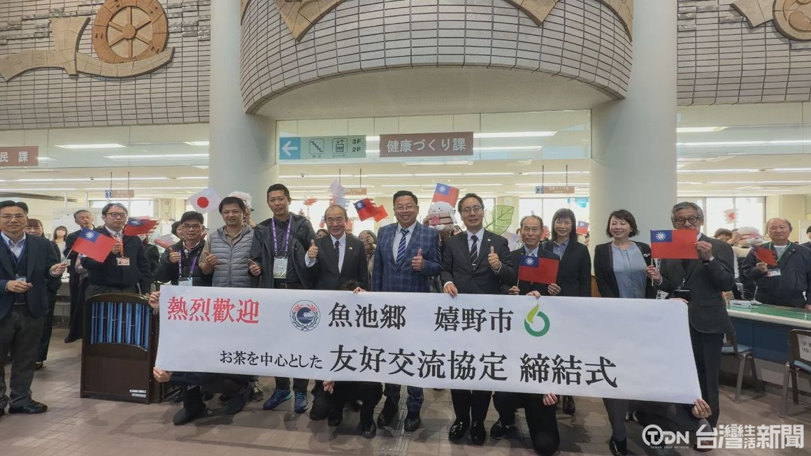 ▲魚池鄉長劉啟帆率團前往日本九州佐賀縣嬉野市,跟嬉野市結盟,簽定友好交流協議/記者 范宏坤 攝