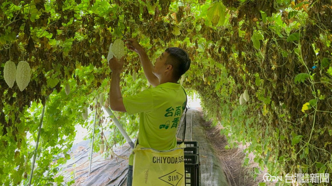 ▲苦瓜青農正在搶收苦瓜,做好防颱準備。/ 記者 林詩涵攝