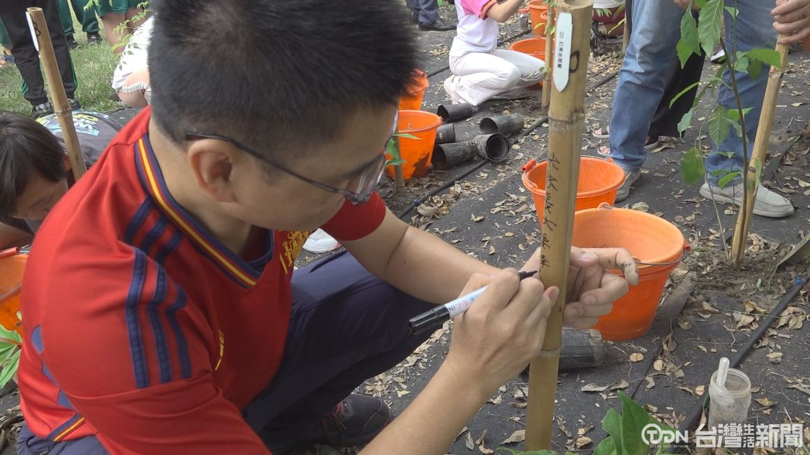 ▲師生接力種樹,寫下祝福話語,為小樹苗注入滿滿的正能量/記者 林佳樺攝
