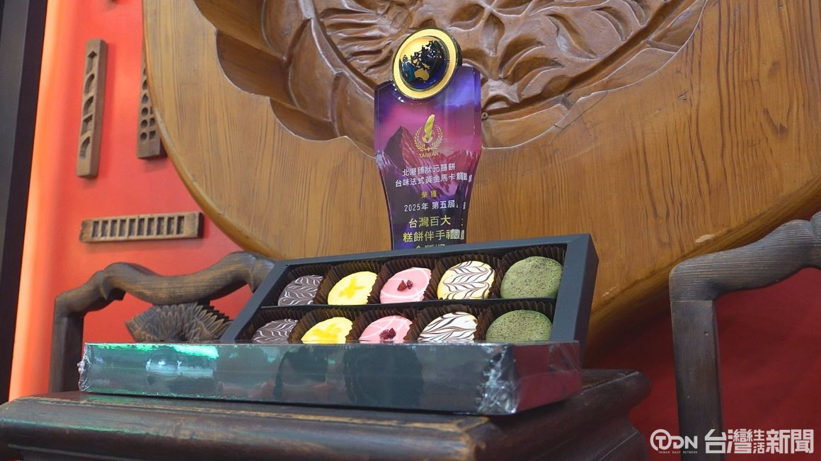 ▲日前台灣百大糕餅伴手禮得獎名單已經公布了,北港朝天宮前糕餅店,以「台味法式馬卡龍」獲得金質獎肯定。/記者 陳佳昇 攝。