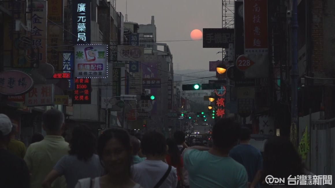 ▲懸日高高掛在街道正中央,宛如電影畫面/記者 廖韋凌攝