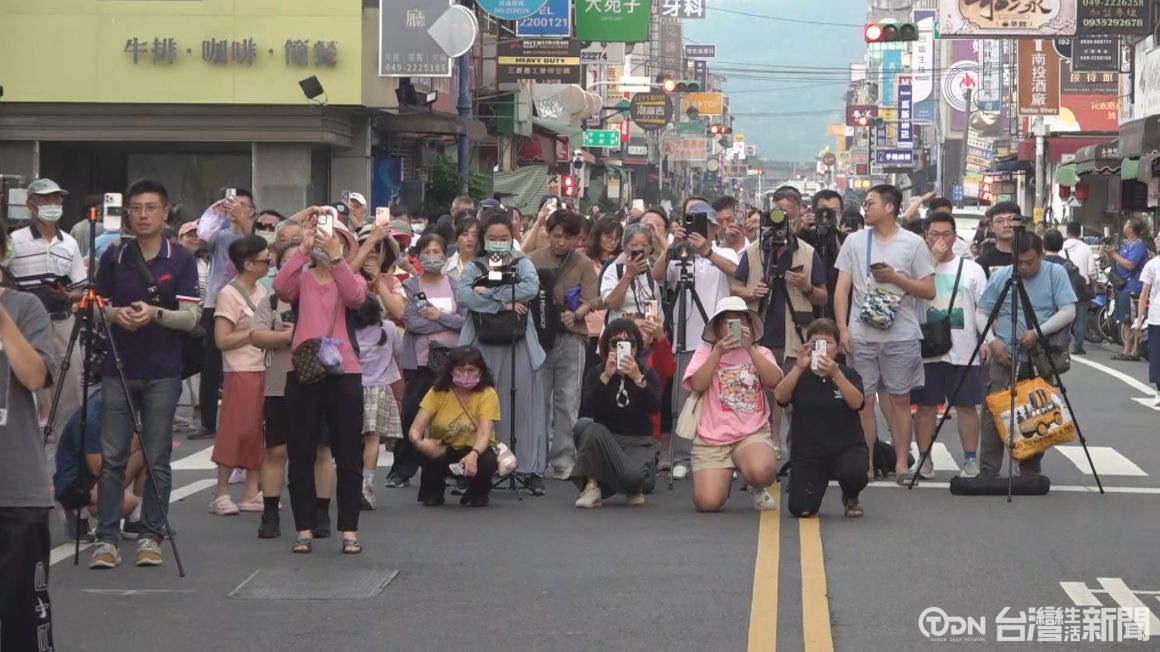 南投市年度浪漫盛事「封街追懸日」,夕陽正好降落在民族路筆直街道中央,吸引大批民眾湧入拍攝。現場除封街管制確保安全外,還結合美食餐車與街頭藝人表演,讓大家在追懸日的同時,也可以享受聽音樂,吃美食