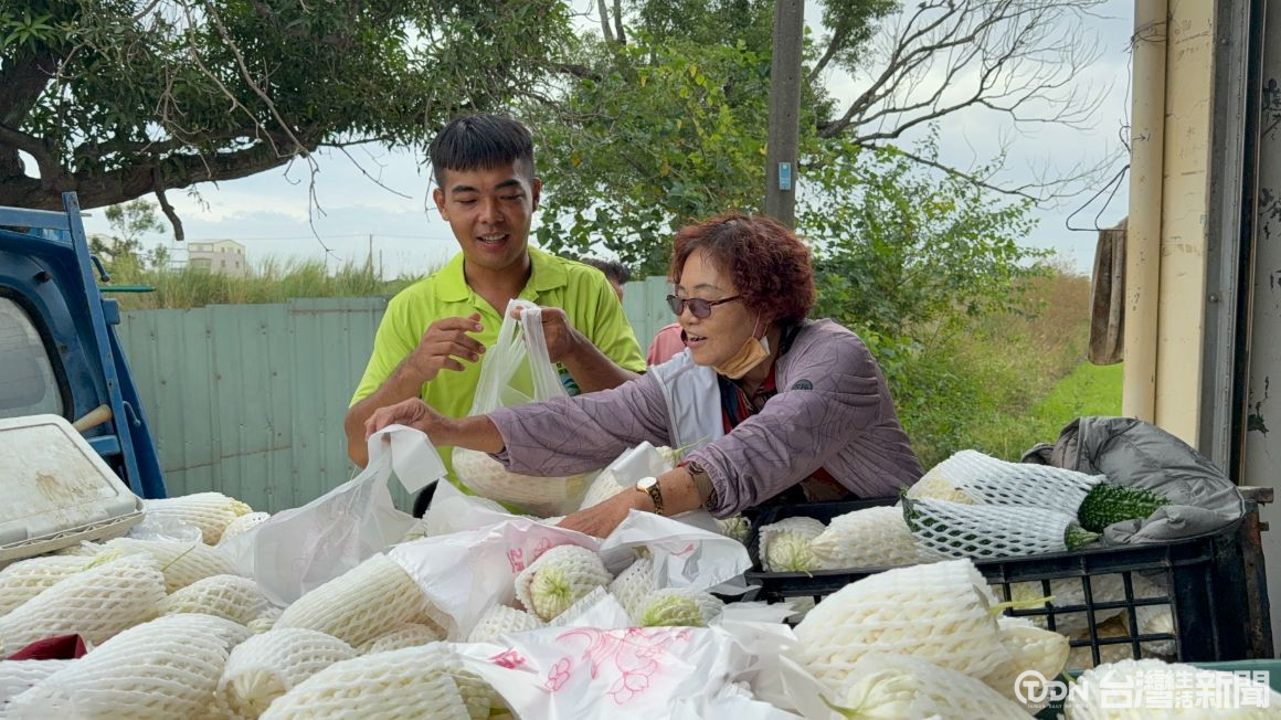 ▲苦瓜青農正在搶收苦瓜,做好防颱準備。 / 記者 林詩涵攝