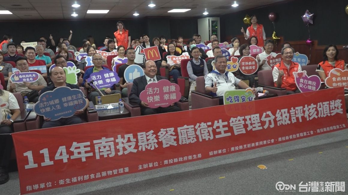 南投縣政府衛生局舉辦114年「餐飲業衛生管理分級評核」,由副縣長王瑞德頒發獎狀,共有59家餐館與餐廳通過。上半年針對早餐店、飲料店的評比,也有302家獲得認證。縣府希望透過分級管理,提升餐飲衛生品質,讓民眾吃得更安心。