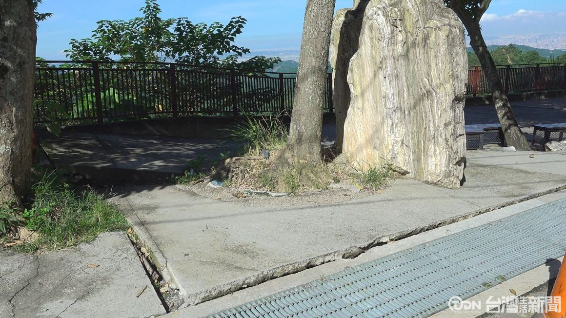 七月多的豪大雨,造成太平赤崁頂景觀平台出現位移,由於裂縫長達15公尺,寬度更時達到10公分,有安全上的疑慮,雖然暫時圍起封鎖線,地方民代表示,下方的路基疑似被掏空,一旁的柏油路面也出現龜裂、位移,看了相當觸目驚心,最寬處有26公分,擔心後續若在下雨或遇上地震會造成整個坍方,希望相關單位能盡快處理。