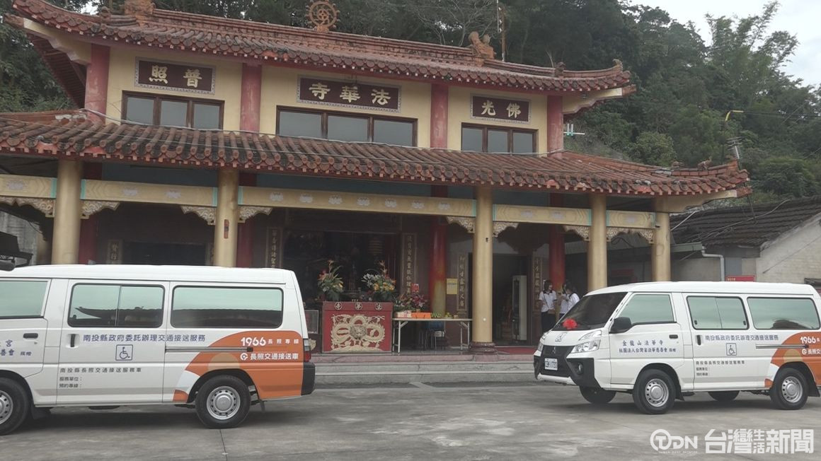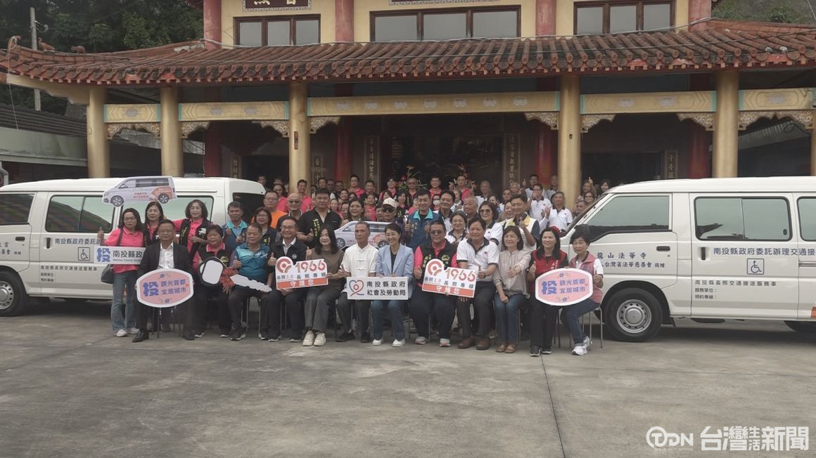 ▲圖為中寮鄉法華寺結合彰化花壇奉天宮,共同捐贈兩輛復康巴士給南投縣政府/記者林妤昕攝