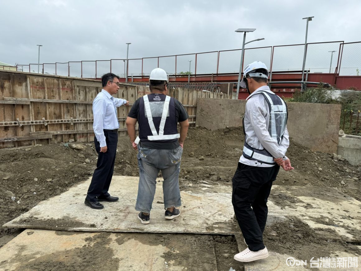 ▲永康區李區長連同施工單位一起查看現場狀況。/ 記者 林詩涵 蕭建緯攝