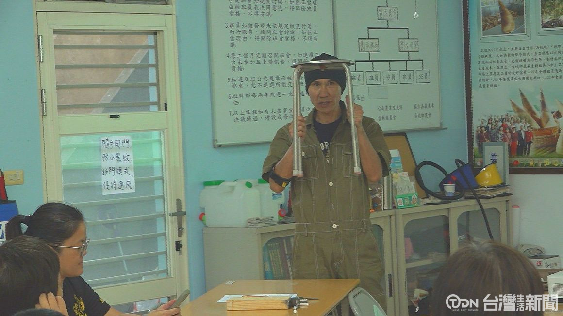 ▲藝術家拉馬帶領民眾將農村常見的鐵椅,重新再生成衣架 / 記者 王可萱 攝