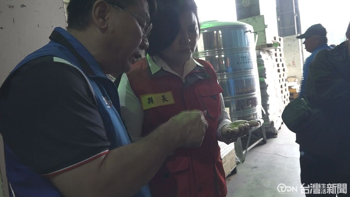 ▲西螺鎮農會廖錦富為雲林縣長張麗善解說稻穀的品質。記者 謝沂辰/攝