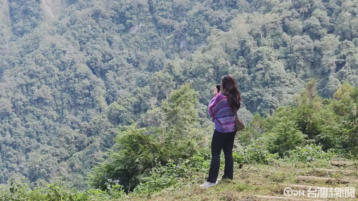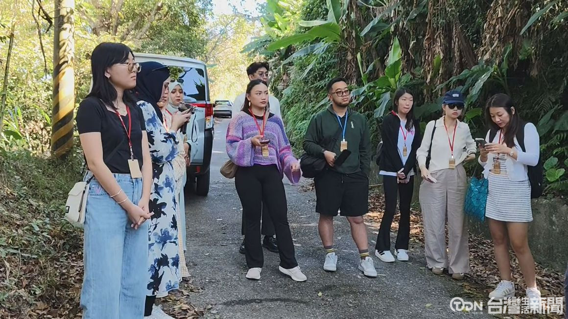 ▲來自汶萊的網紅團在濁水布農合作社的帶領下來到超過一千海拔的人倫林道體驗高山森林與美景/記者金芸亘攝
