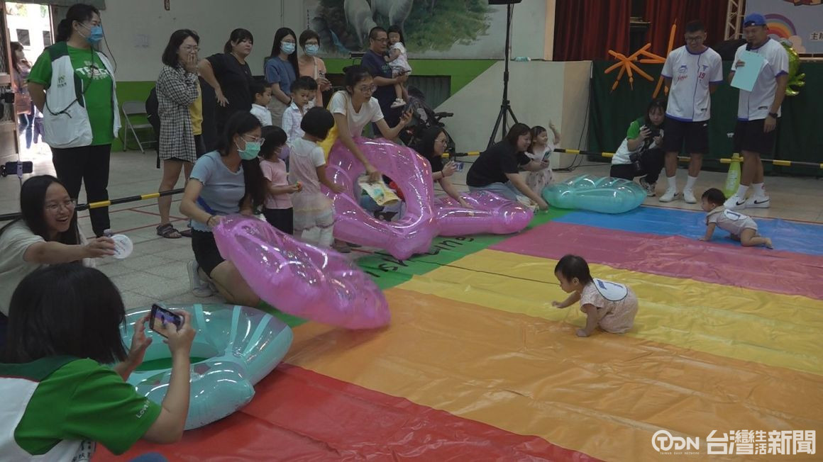 寶寶爬行比賽可愛又刺激。家扶基金會雲林發展學園,這天在土庫鎮永年中學辦理「家庭童樂會」,邀請社區家長與孩子同樂。參與民眾指出,豐富的遊戲與親子闖關體驗,讓大人小孩都玩得很開心,雲林發展學園不僅大力協助早療家庭,對有育兒相關問題的家長來說也是很好的諮詢對象。