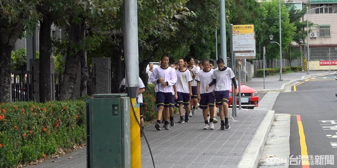 光復國中小學生走在嶄新的通學步道上,步道相當平整,相較於過去高低不平,還有部分沒有人行道,安全性提高許多。